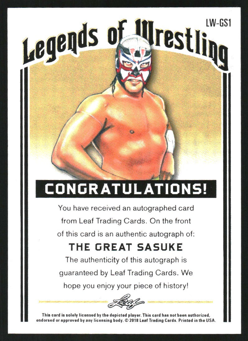 2018 Leaf Legends of Wrestling Autographs Green #LWGS1 The Great Sasuke Auto /15