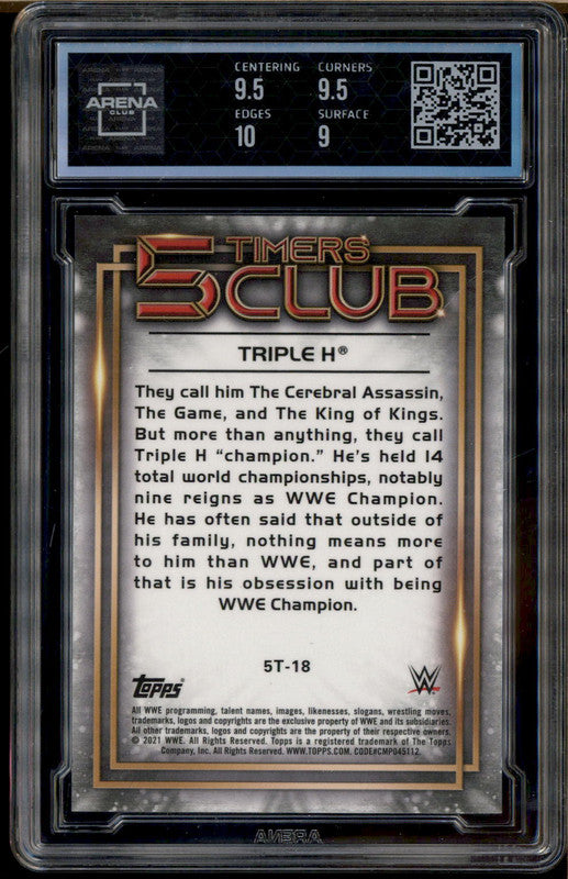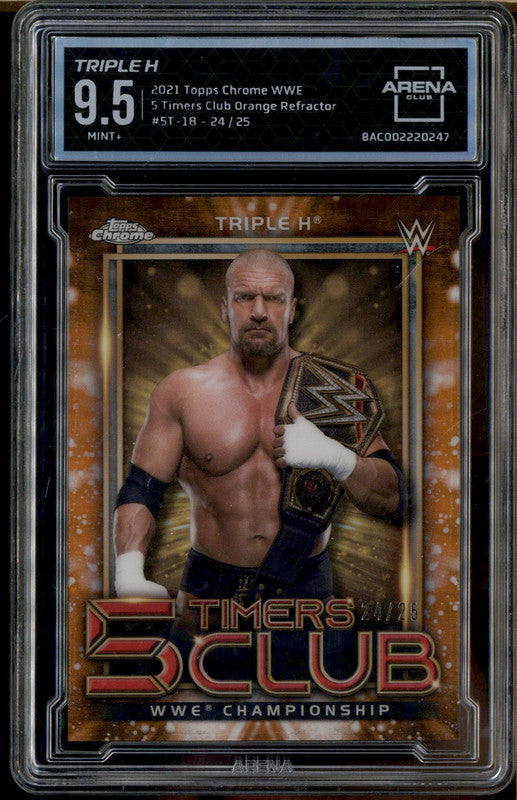 2021 Topps Chrome WWE 5 Time Club Orange Triple H /25 Arena Club 9.5