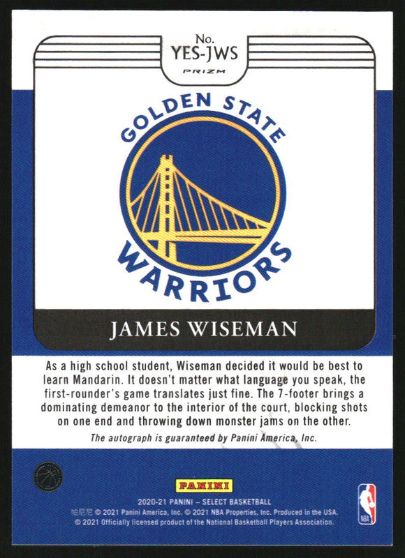 2020-21 Select Youth Explosion Signatures #2 James Wiseman Auto
