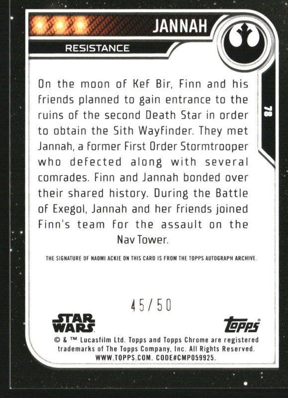 2023 Topps Chrome Star Wars Auto Gold Refractors #78 Jannah /50