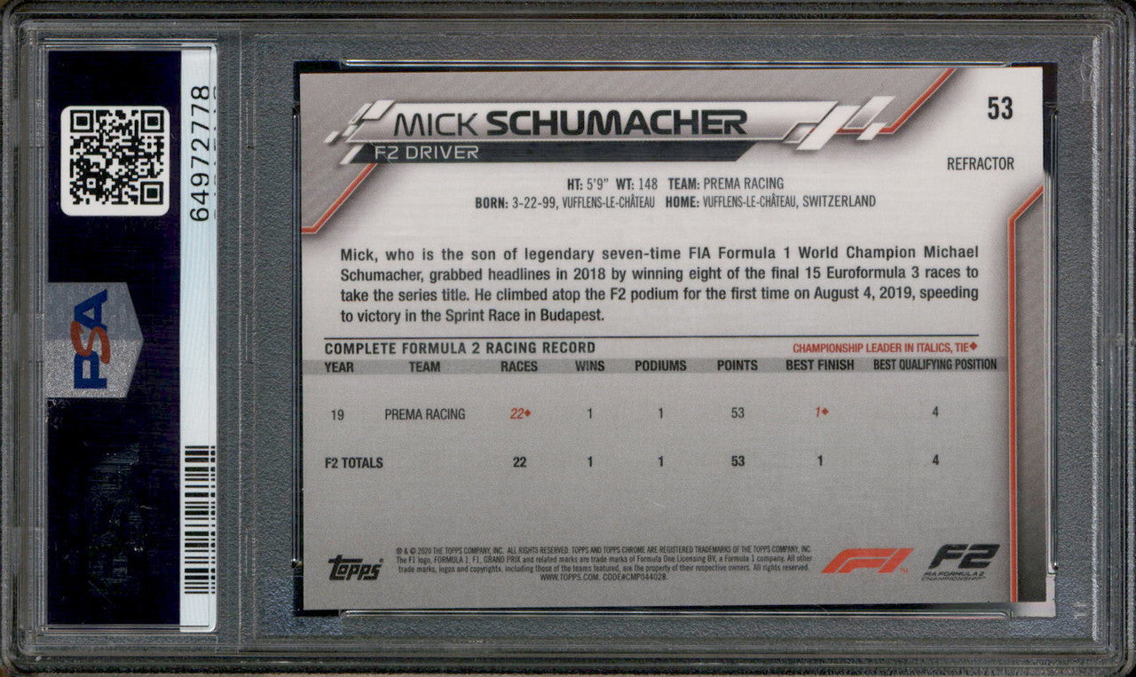 2020 Topps Chrome F1 Refractor #53 Mick Schumacher PSA 9