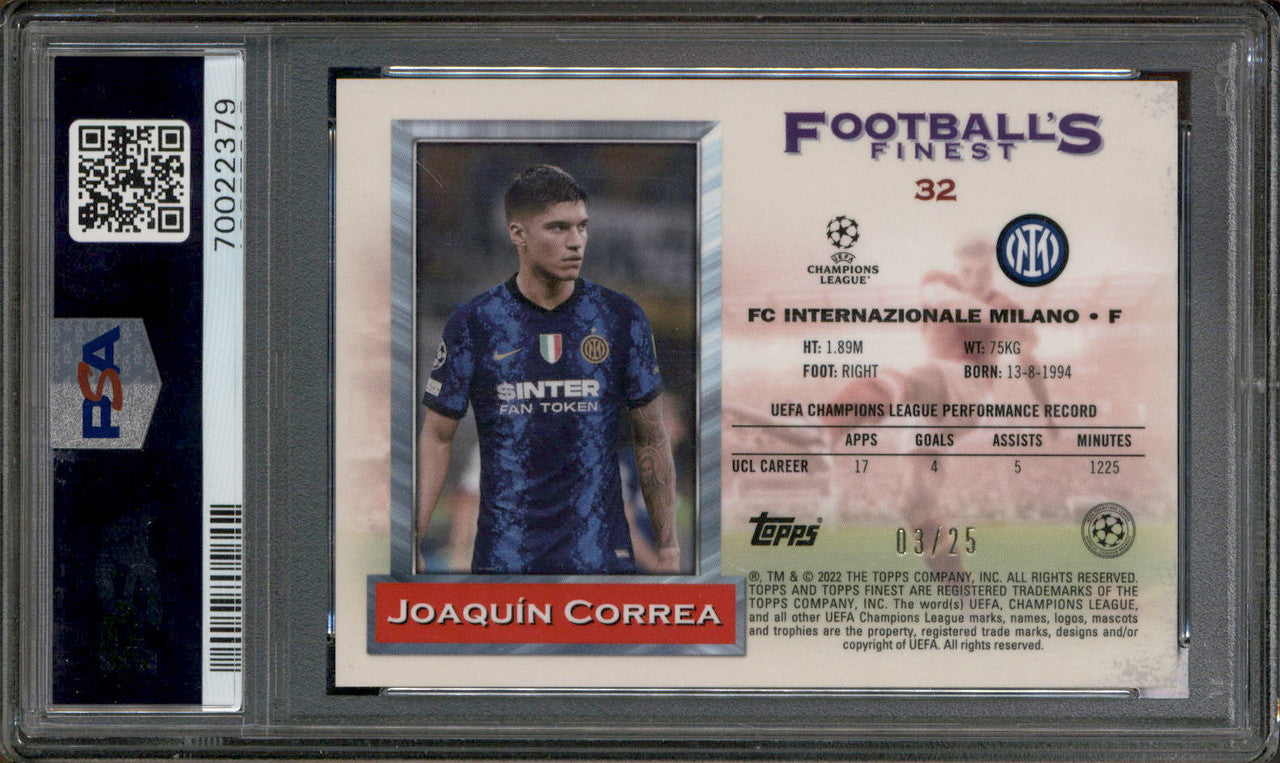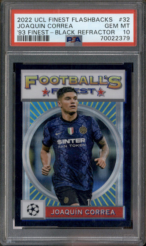 2022 UCL Finest Flashbacks 93 Black Refractor Joaquin Correa /25 PSA 10