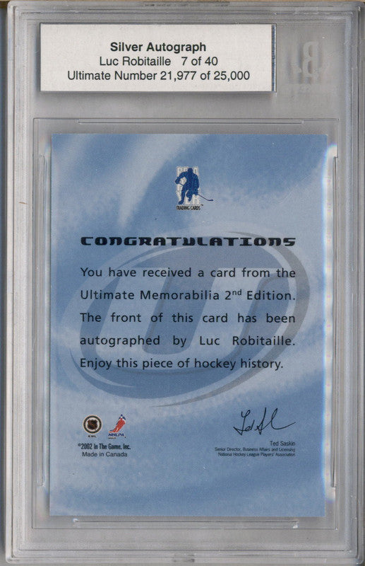 2001-02 Be A Player Ultimate Memorabilia Luc Robitaille Auto /40 BGS 8.5