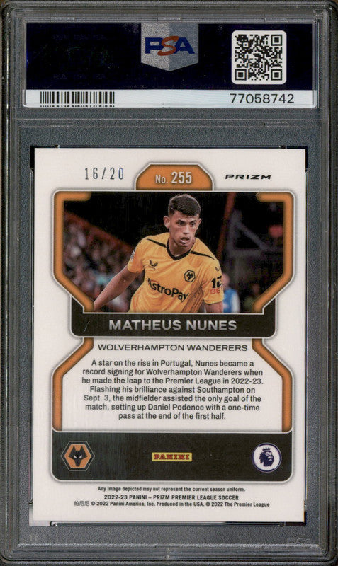 2022 Panini Prizm Purple Mojo #255 Matheus Nunes RC Rookie /20 PSA 10