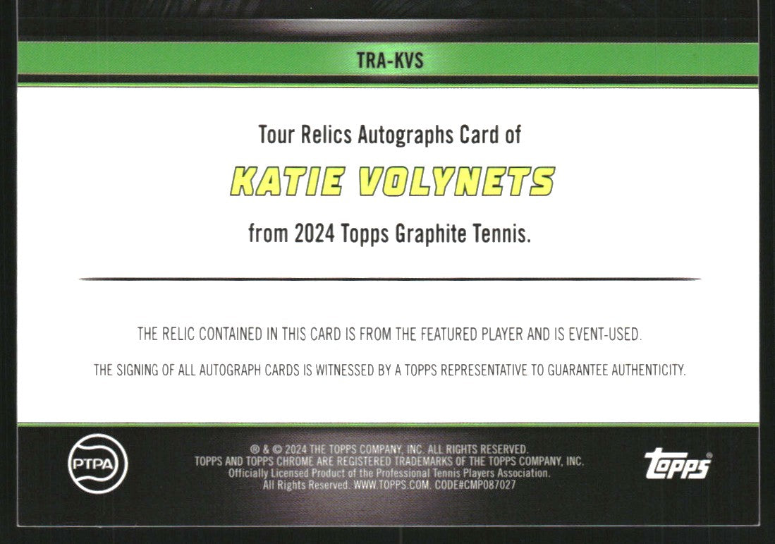 2024 Topps Graphite Tour Relic Autographs Green Katie Volynets Auto /75