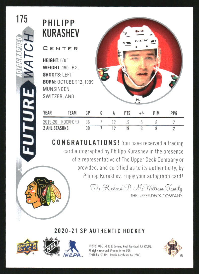 2020-21 SP Authentic #175 Philipp Kurashev Rookie Autograph RC Auto /999