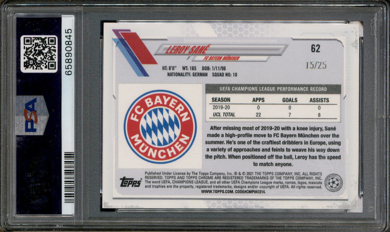 2020 Topps Chrome UCL Sapphire Purple Leroy Sane /25 PSA 10