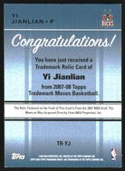 2007-08 Topps Trademark Moves Relics Red #YJ Yi Jianlian RC /50