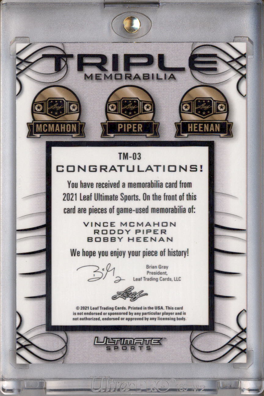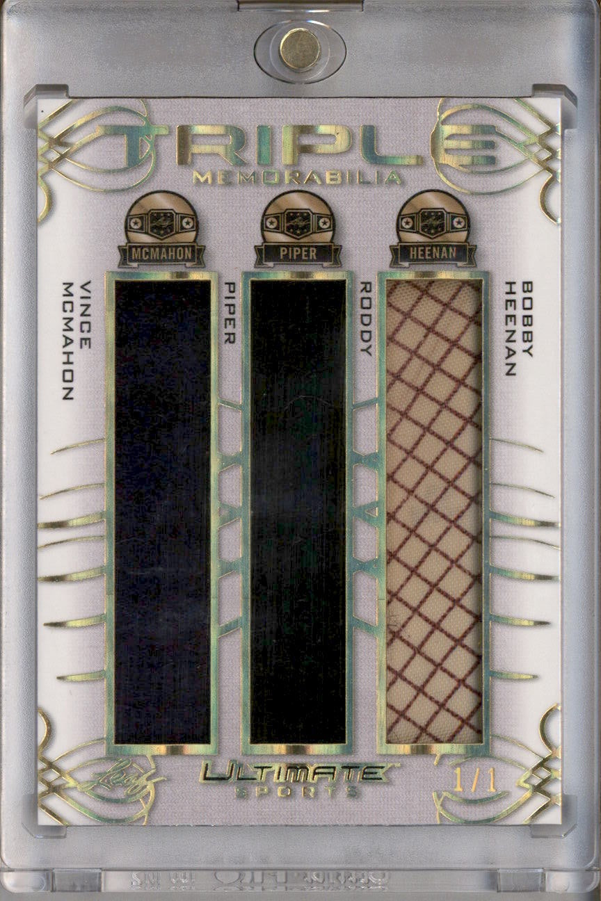2021 Leaf Triple Memorabilia Vince McMahon Roddy Piper Bobby Heenan 1/1