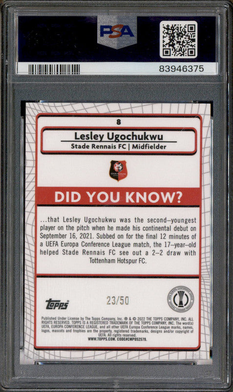 2021 Merlin Chrome Gold Atomic Refractor Lesley Ugochukwe RC /50 PSA 9