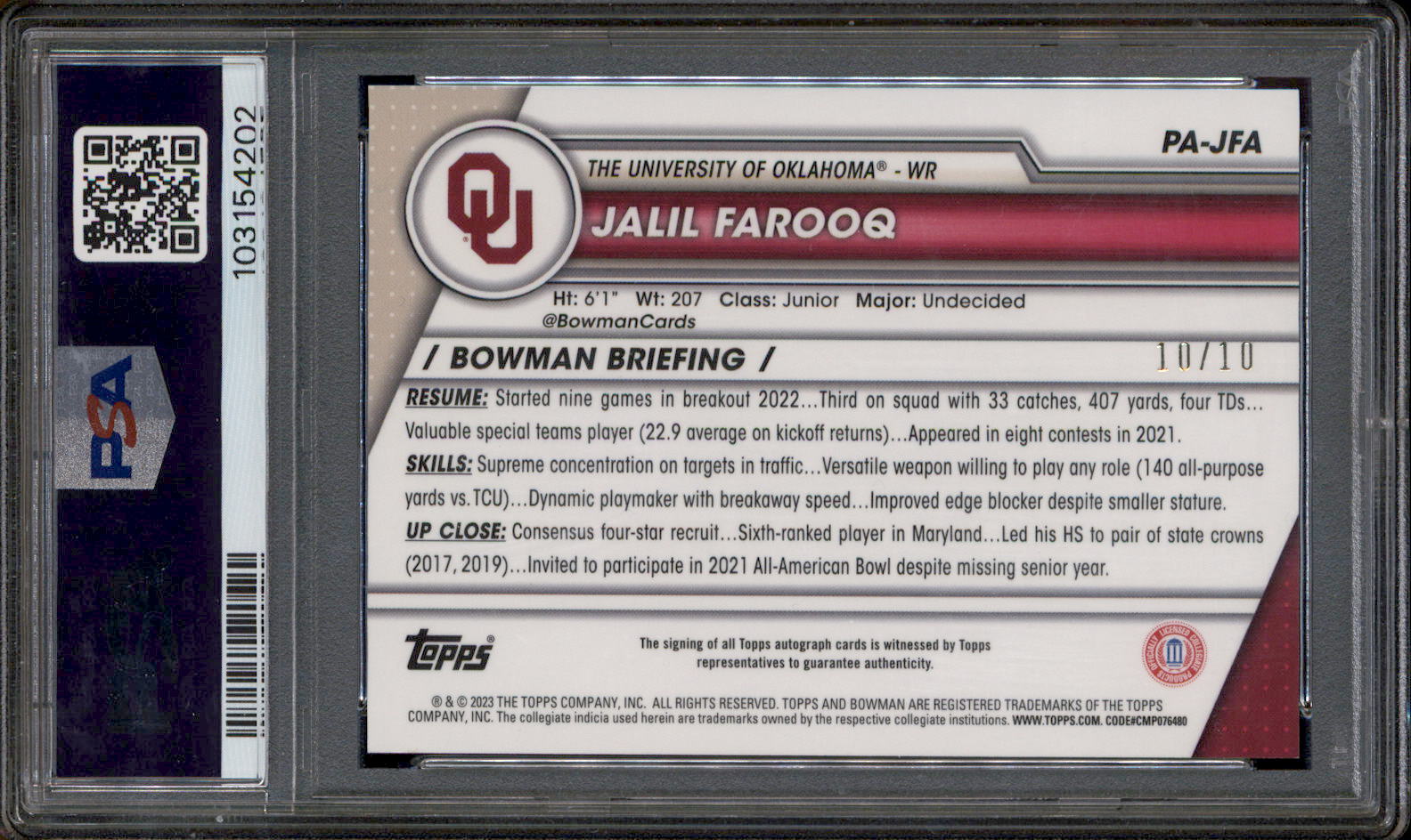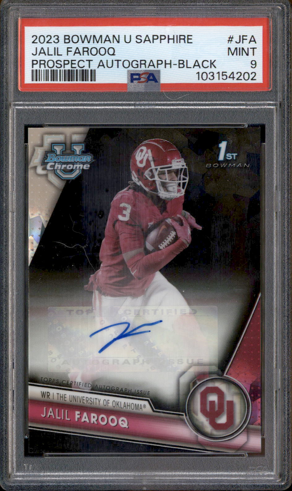 2023 Bowman Chrome University Sapphire Black Jalil Farooq RC Auto /10 PSA 9