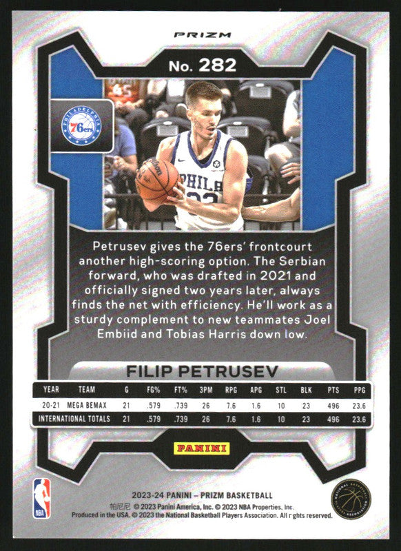 2023-24 Panini Prizm Prizms Choice Tiger Stripe #282 Filip Petrusev RC Rookie