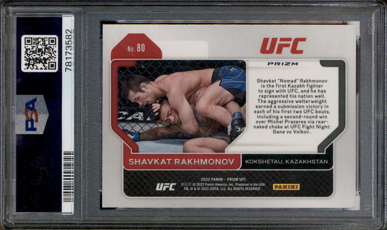 2022 Panini Prizm UFC Ruby Wave #80 Shavkat Rakhmonov RC Rookie PSA 8
