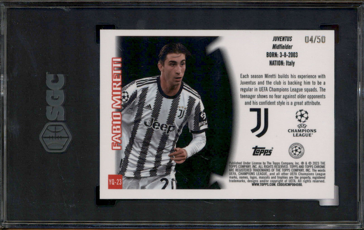 2022-23 Topps Chrome UCC Youthquake Gold Refractor Fabio Miretti /50 SGC 10