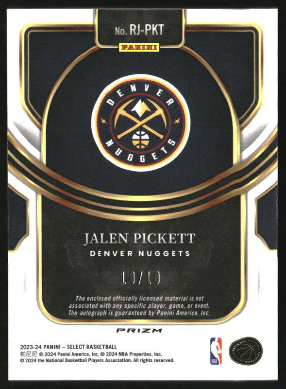 2023-24 Select Rookie Jersey Autographs Gold Prizms Jalen Pickett RC Auto /10