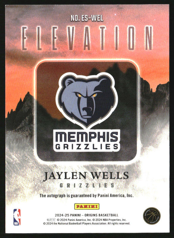 2024-25 Panini Origins Elevation Signatures Red Jaylen Wells RC Auto /49