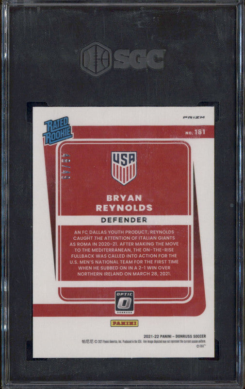 2021 Donruss Qatar Optic Orange Velocity Prizm Bryan Reynolds RC /49 SGC 10