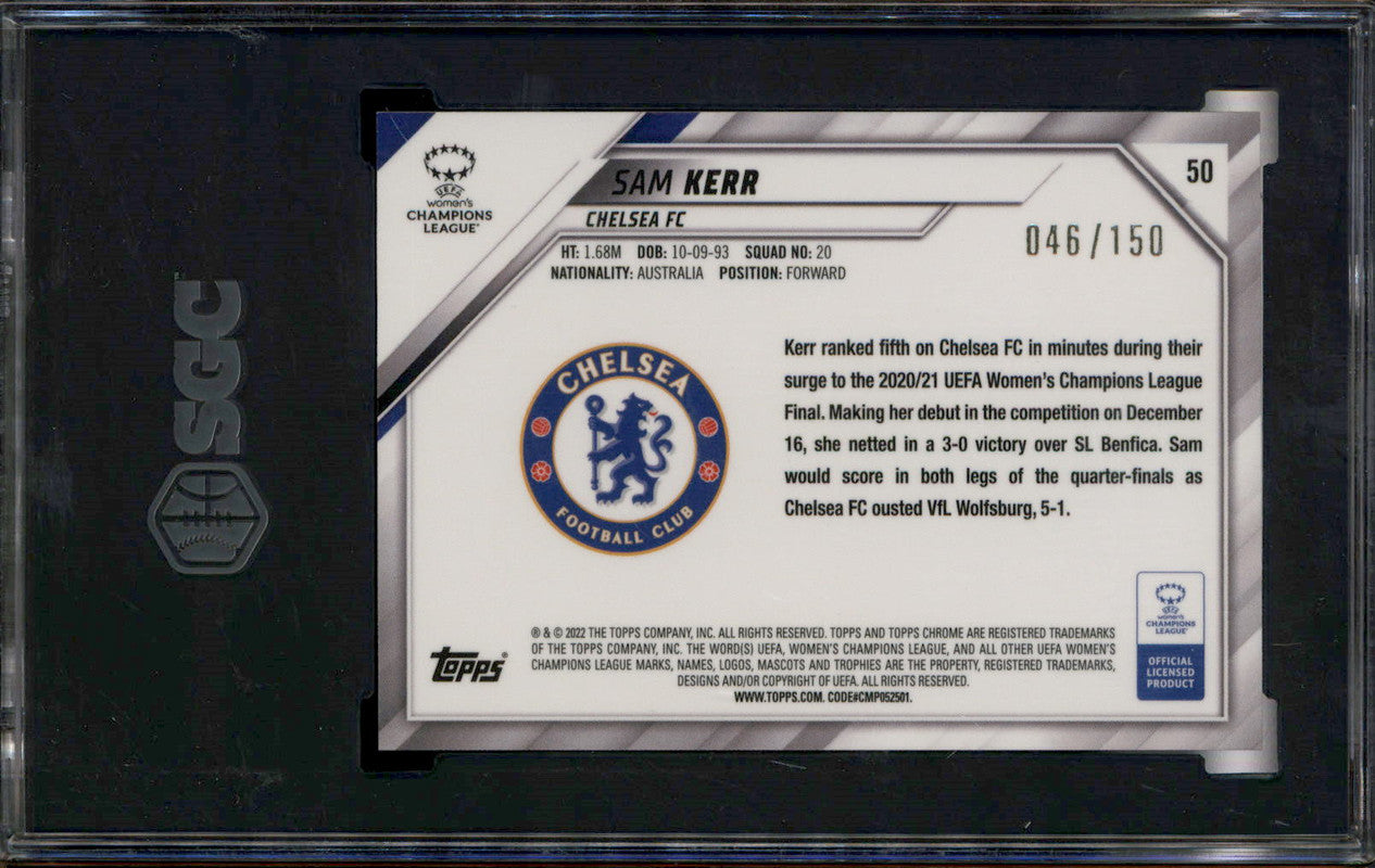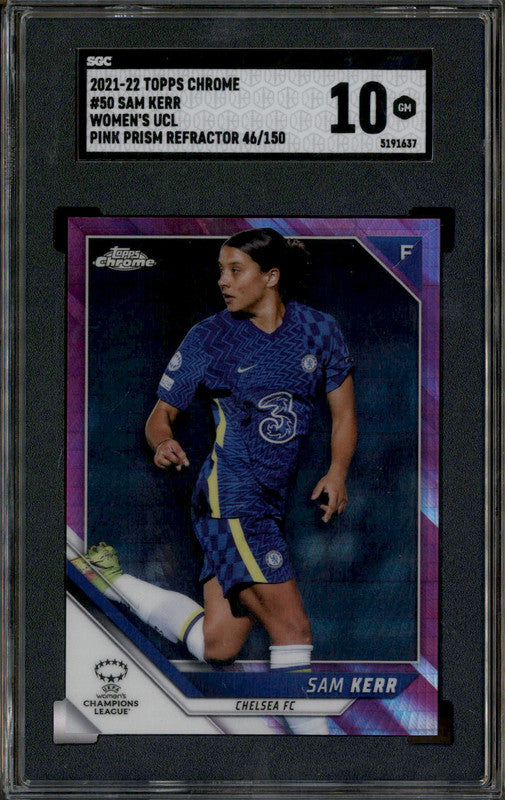 2021 Topps Chrome Women's UCL Pink Prism Sam Kerr /150 SGC 10