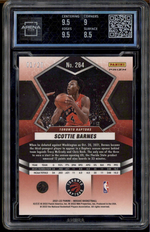 2021 Panini Mosaic Fast Break Pink #264 Scottie Barnes RC /20 Arena Club 9
