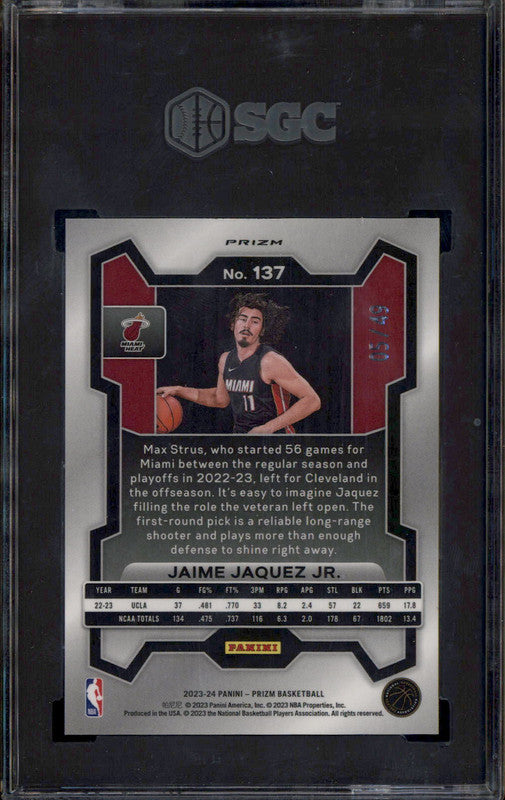 2023 Panini Prizm Orange Prizm #137 Jaime Jaquez Jr RC Rookie /49 SGC 9.5