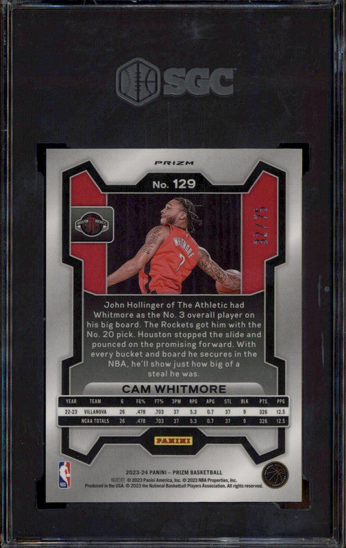 2023 Panini Prizm Red Power Prizm #129 Cam Whitmore RC /75 SGC 10
