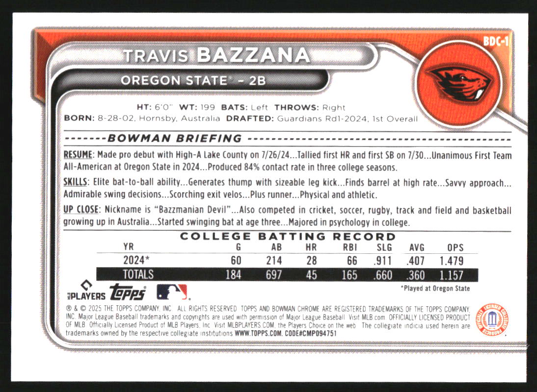 2024 Bowman Chrome Draft #BDC1 Travis Bazzana