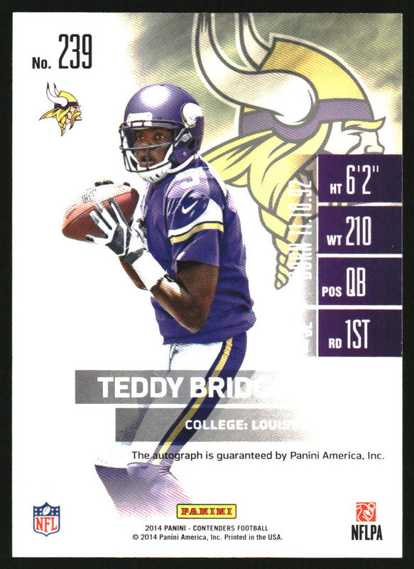 2014 Panini Contenders #239 Teddy Bridgewater RC Auto Looking Left