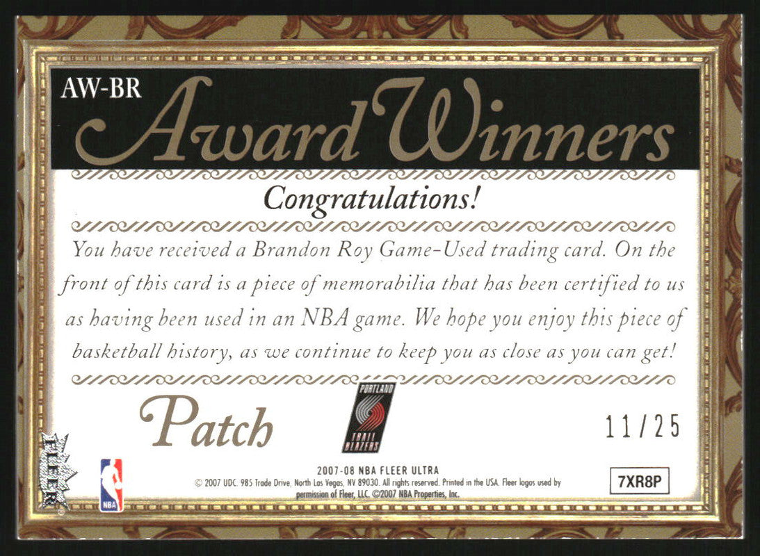 2007-08 Ultra SE Award Winners Patch #AWBR Brandon Roy /25