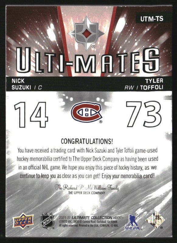 2021-22 Ultimate Collection Ulti-Mates Nick Suzuki Tyler Toffoli