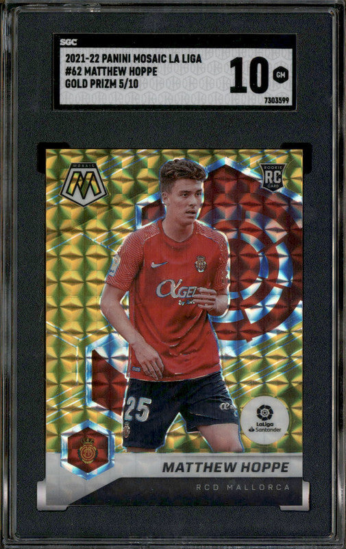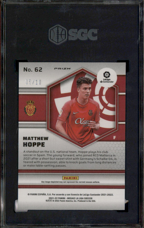 2021 Panini Mosaic La Liga Gold Prizm #62 Matthew Hoppe RC Rookie /10 SGC 10