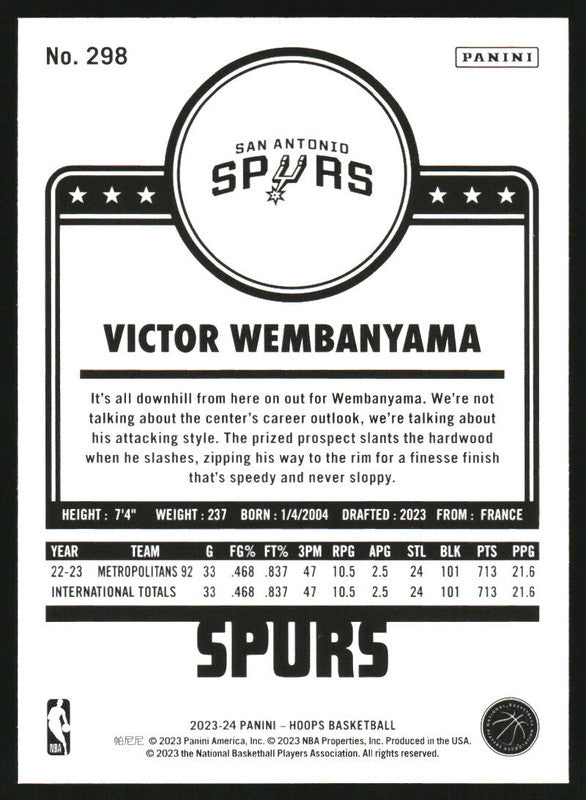 2023-24 Hoops Winter #298 Victor Wembanyama RC Rookie