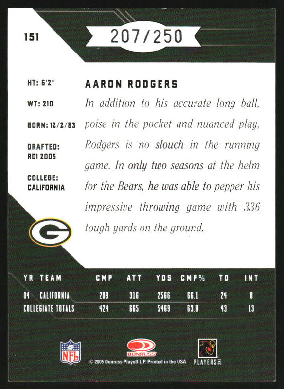 2005 Leaf Limited #151 Aaron Rodgers RC Rookie /250