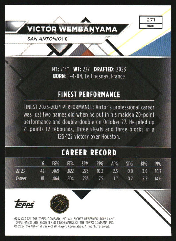 2023-24 Topps Finest #271 Victor Wembanyama RC Rookie