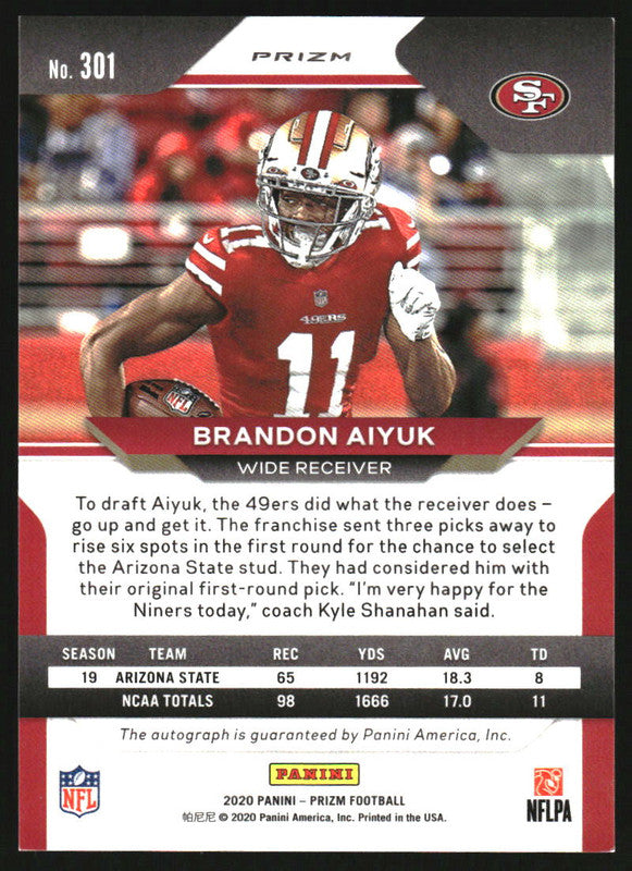 2020 Panini Prizm Rookie Autographs #301 Brandon Aiyuk RC Auto
