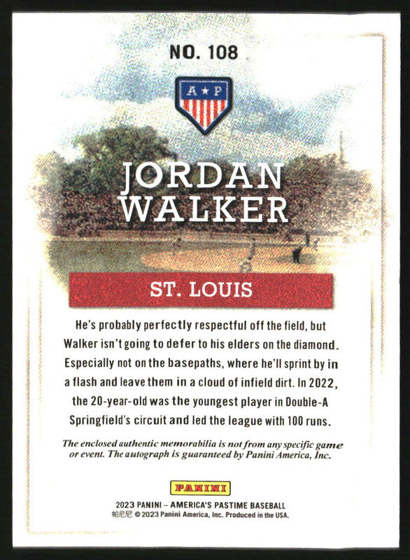 2023 Panini Chronicles America's Pastime Rookies #108 Jordan Walker RC Auto /50