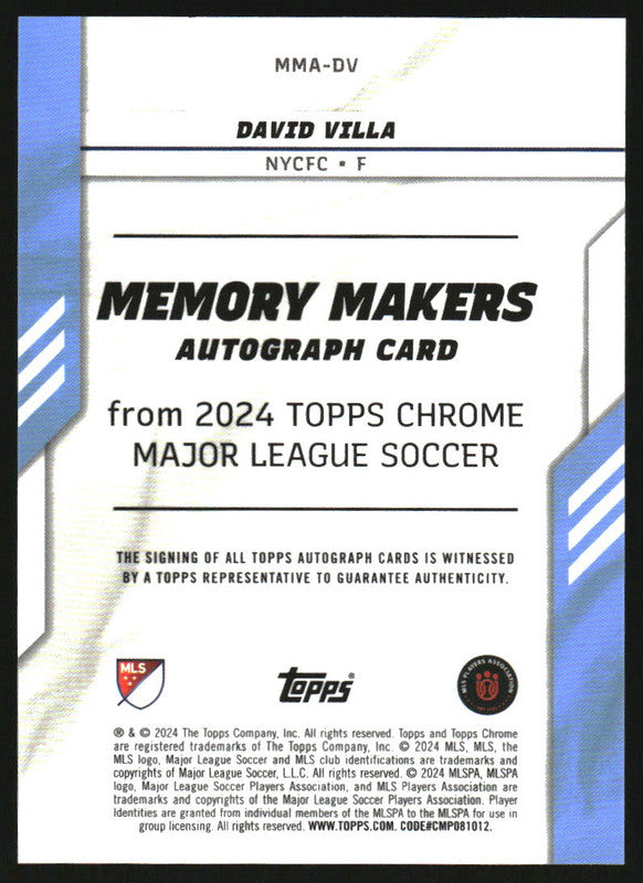 2024 Topps Chrome MLS Memory Makers Autographs #MMADV David Villa Auto