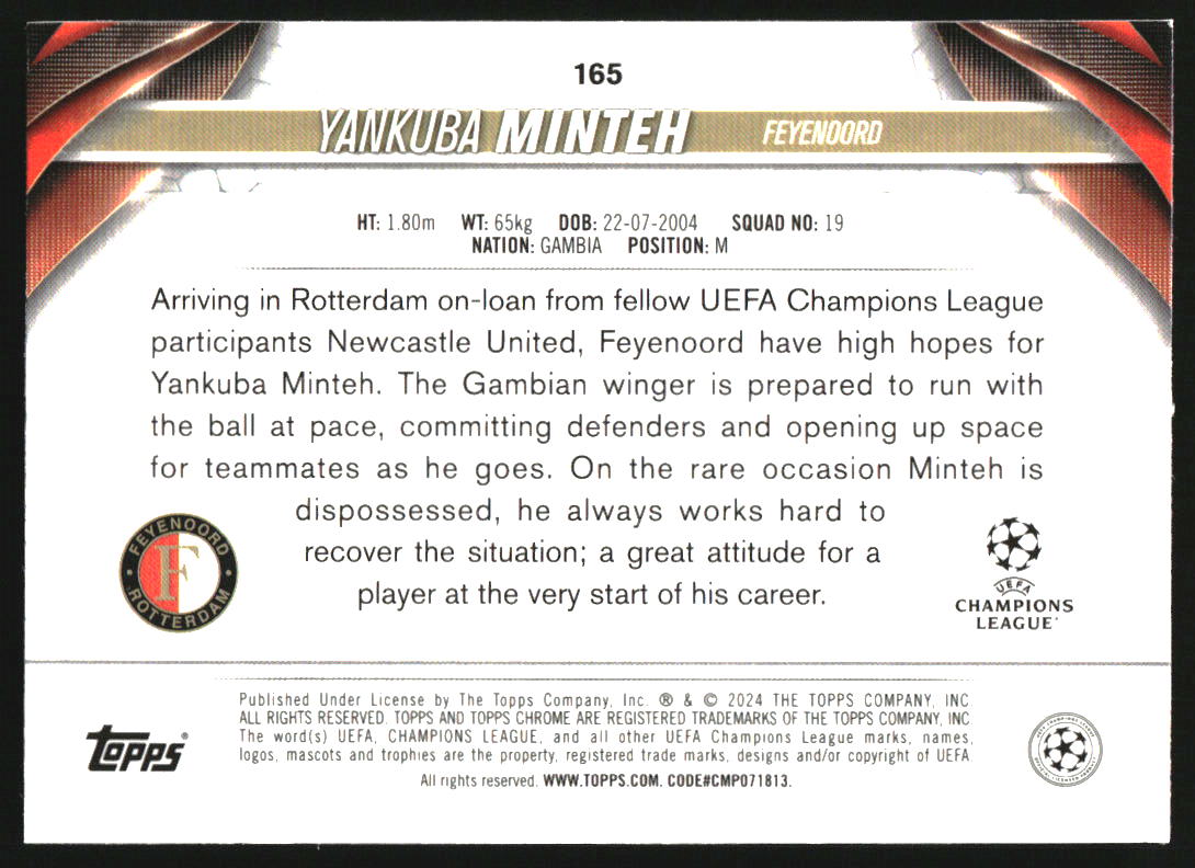 2023 Topps Chrome UEFA Club Competitions Gold Lava #165 Yankuba Minteh RC