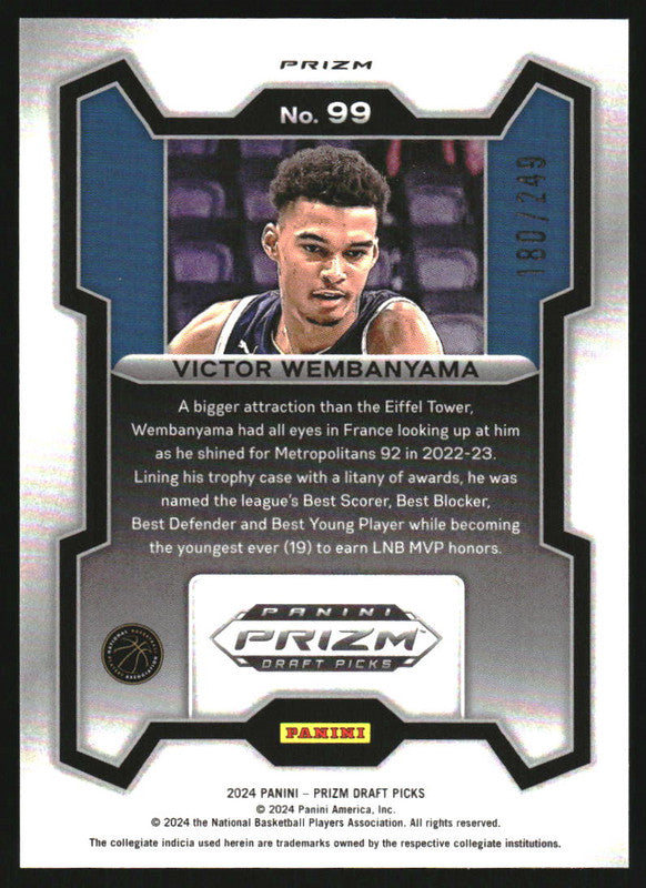 2024 Panini Prizm Draft Picks Collegiate Blue Wave Prizm Victor Wembanyama /249