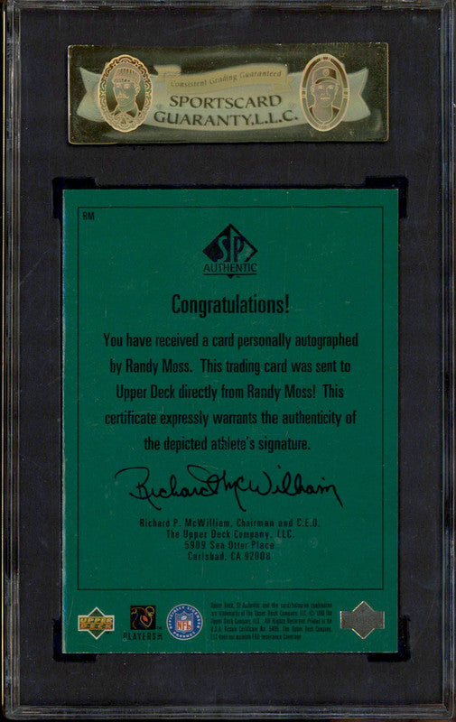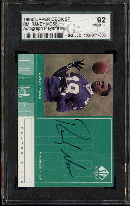 1998 Upper Deck Rookie Autograph Player's Ink Randy Moss RC Auto SGC 92