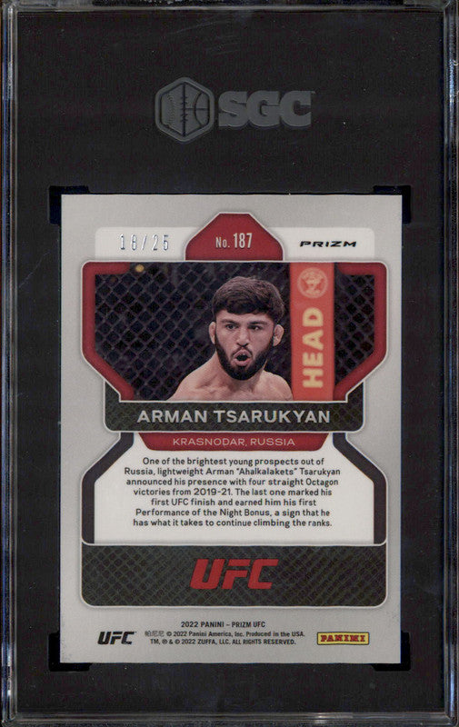 2022 Panini Prizm UFC Green Pulsar Prizm #187 Arman Tsarukyan RC /25 SGC 8