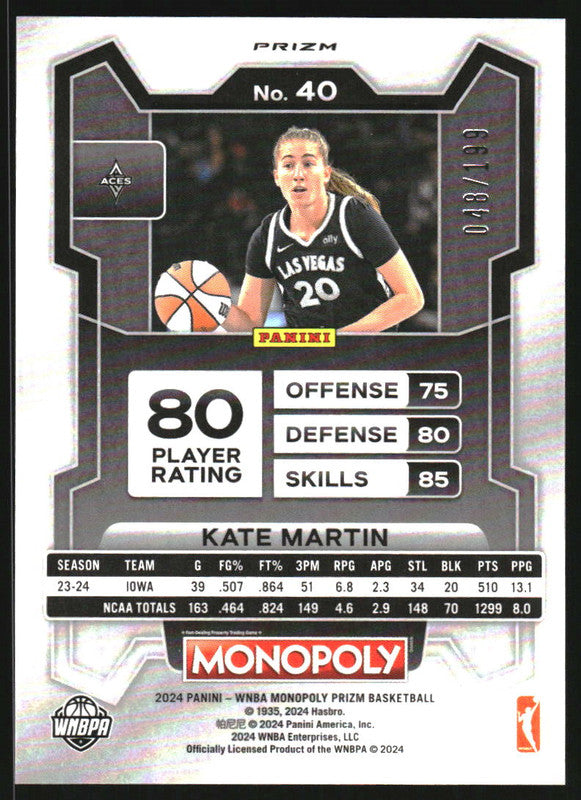 2024 Panini Prizm Monopoly WNBA Light Blue Prizm #40 Kate Martin RC /199