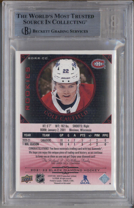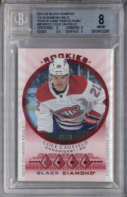 2021 Black Diamond '15 Diamond Relic Rookie Gem Ruby Cole Caufield RC /15 BGS 8