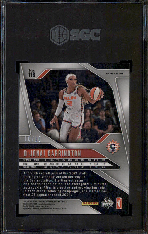 2024 Panini Prizm WNBA Gold Prizm #118 Dijonai Carrington /10 SGC 9.5