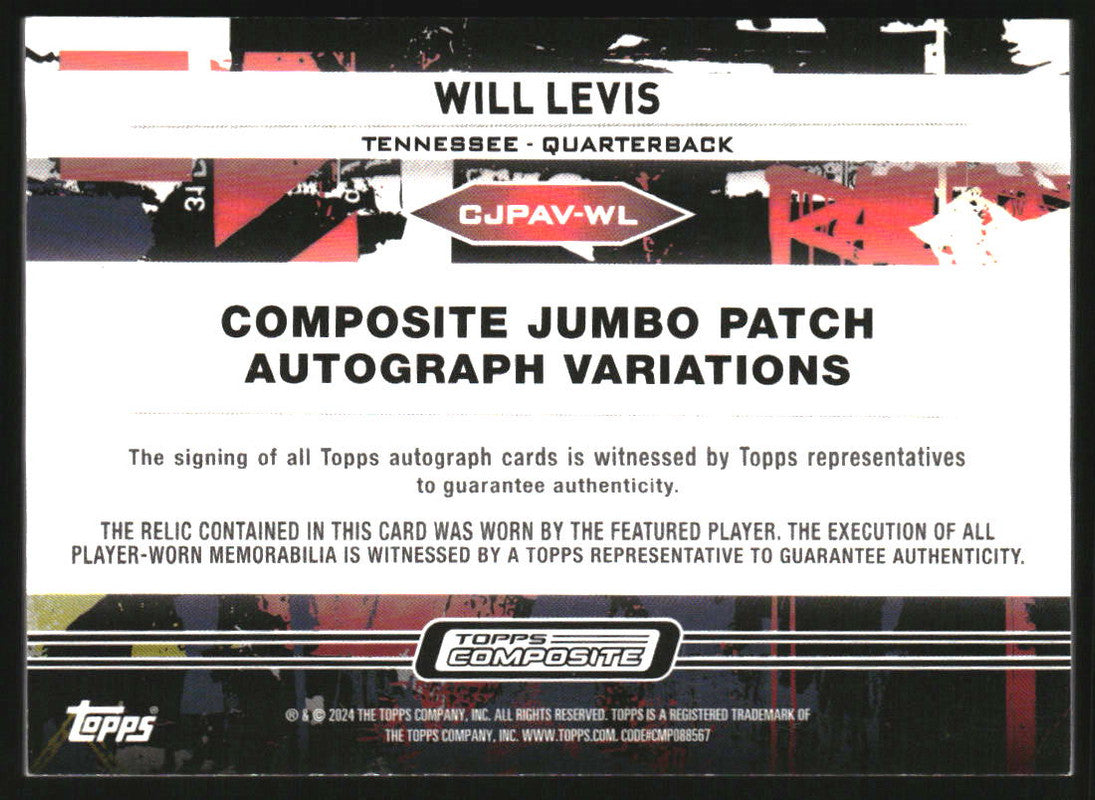 2023 Topps Composite Jumbo Swatch Autographs Vertical Will Levis RC Auto /99