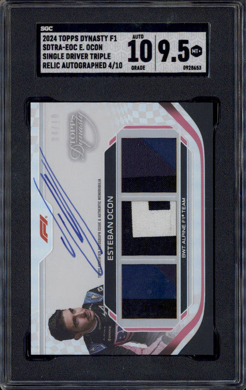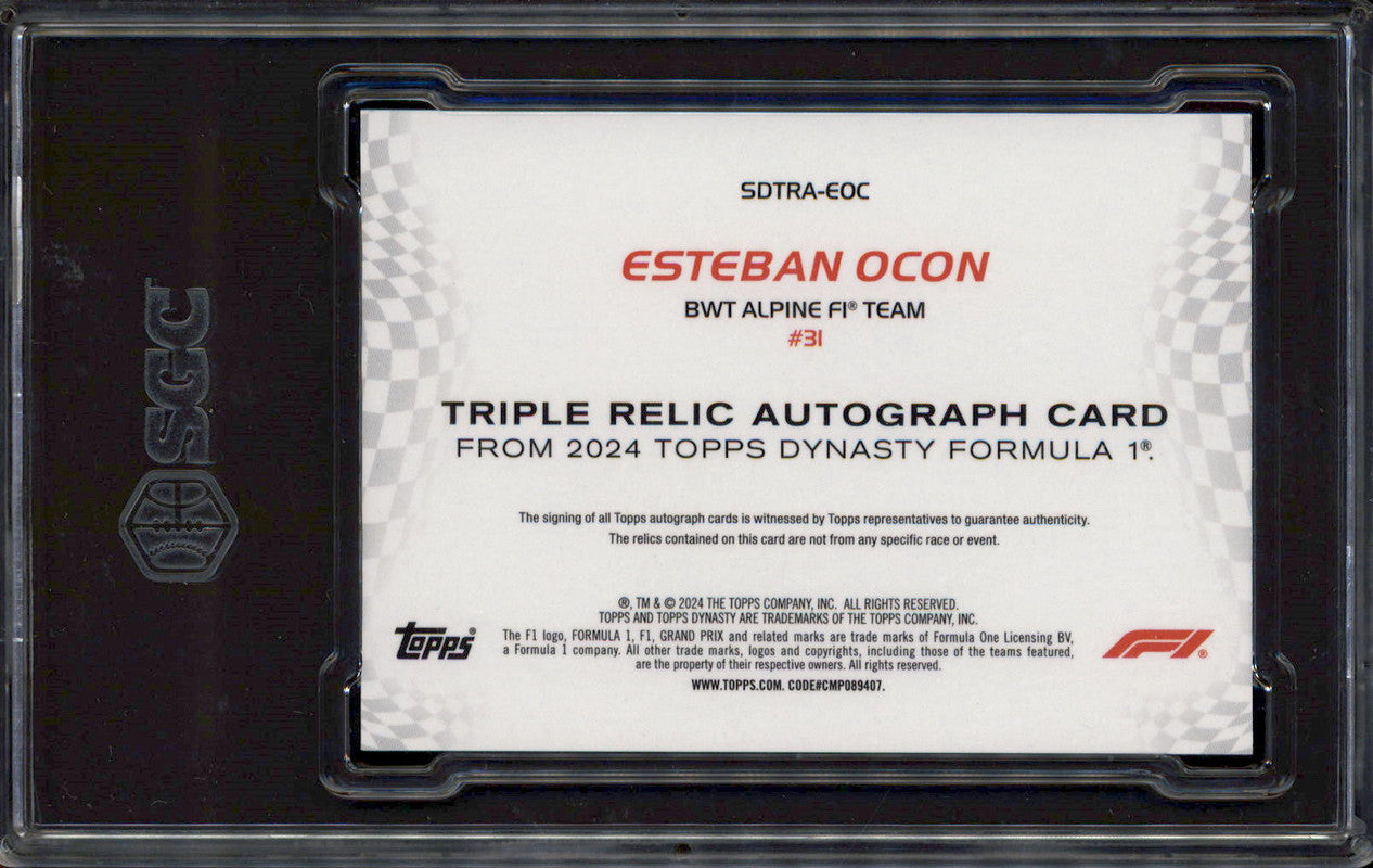 2024 Topps Dynasty F1 Single Driver Triple Relic Auto Esteban Ocon /10 SGC 9.5