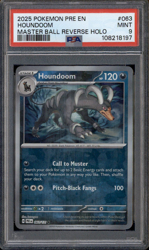 2025 Pokemon Pre Prismatic Evolutions Master Ball Reverse Holo Houndoom PSA 9