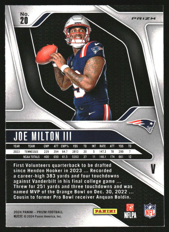 2024 Panini Prizm Rookie Variations #20 Joe Milton III RC