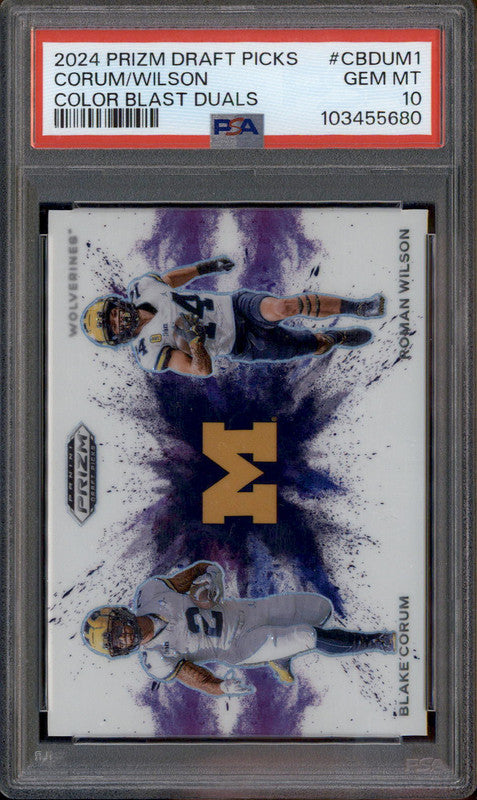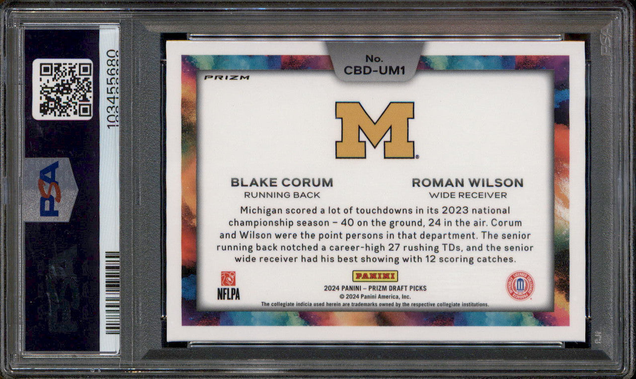 2024 Panini Prizm Draft Color Blast Dual #CBDUM1 Blake Corum Roman Wilson PSA 10