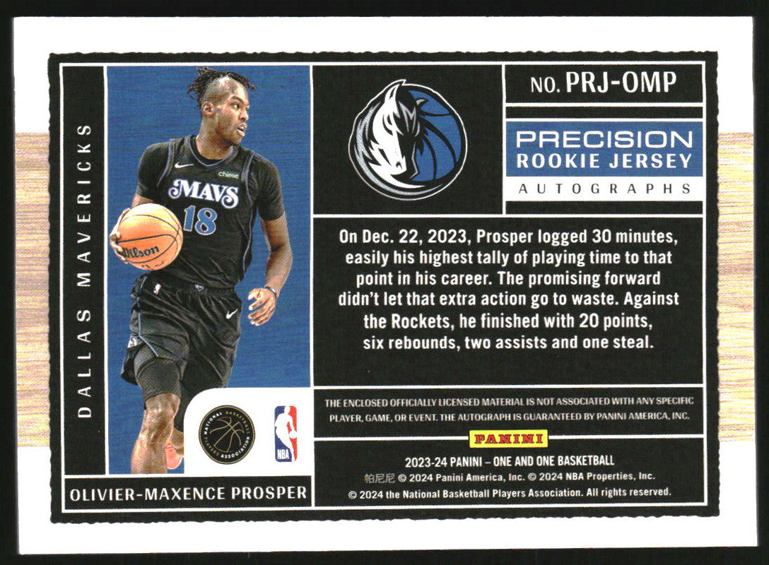 2023 Panini One and One Rookie Jersey Auto Blue Olivier-Maxence Prosper RC /49