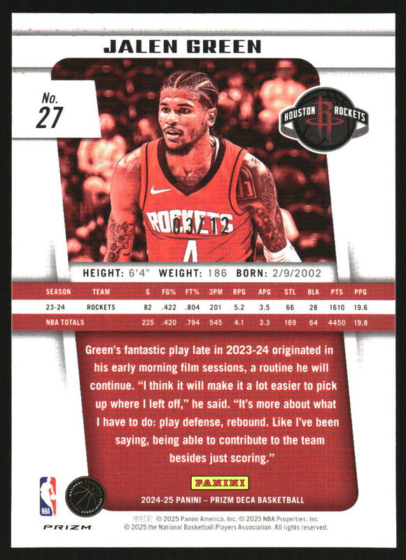 2024-25 Prizm Deca Prizms Green Shimmer FOTL #27 Jalen Green /12